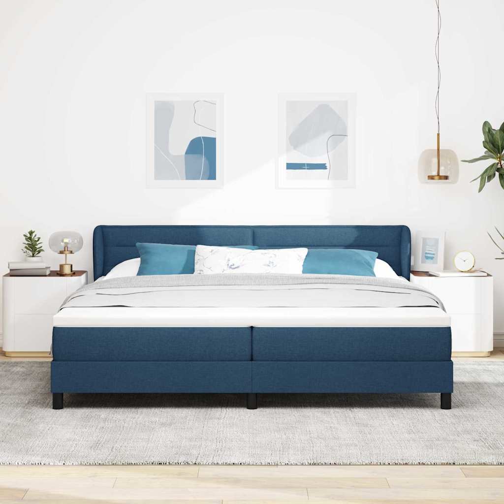 Bäddfjäder med madrass med huvudgavel Blå 200 x 200 cm tyg