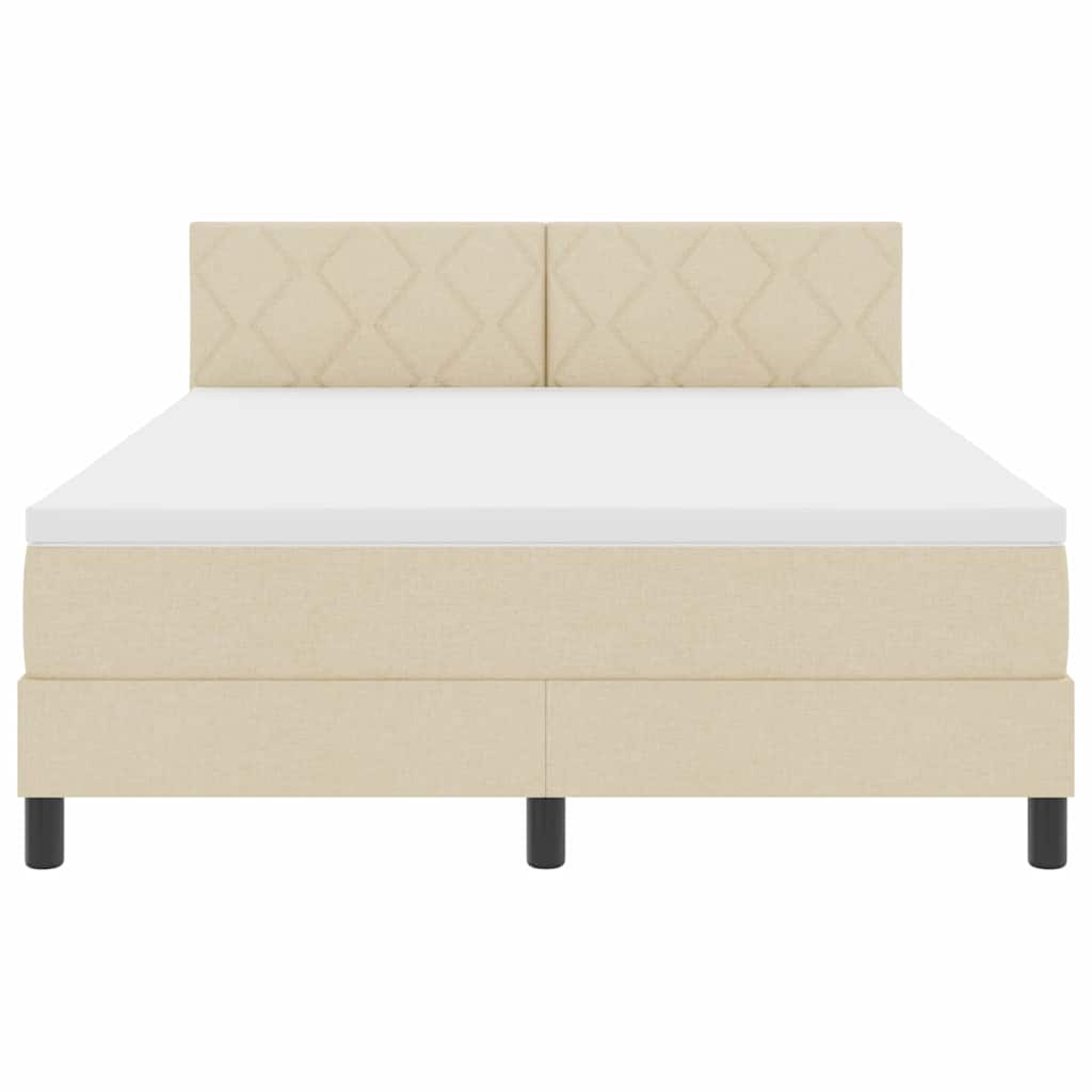 Bäddfjäder med madrass med huvudgavel Kräm 160 x 200 cm tyg