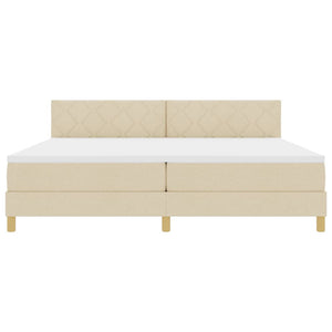 Bäddfjäder med madrass med huvudgavel Kräm 200 x 200 cm tyg