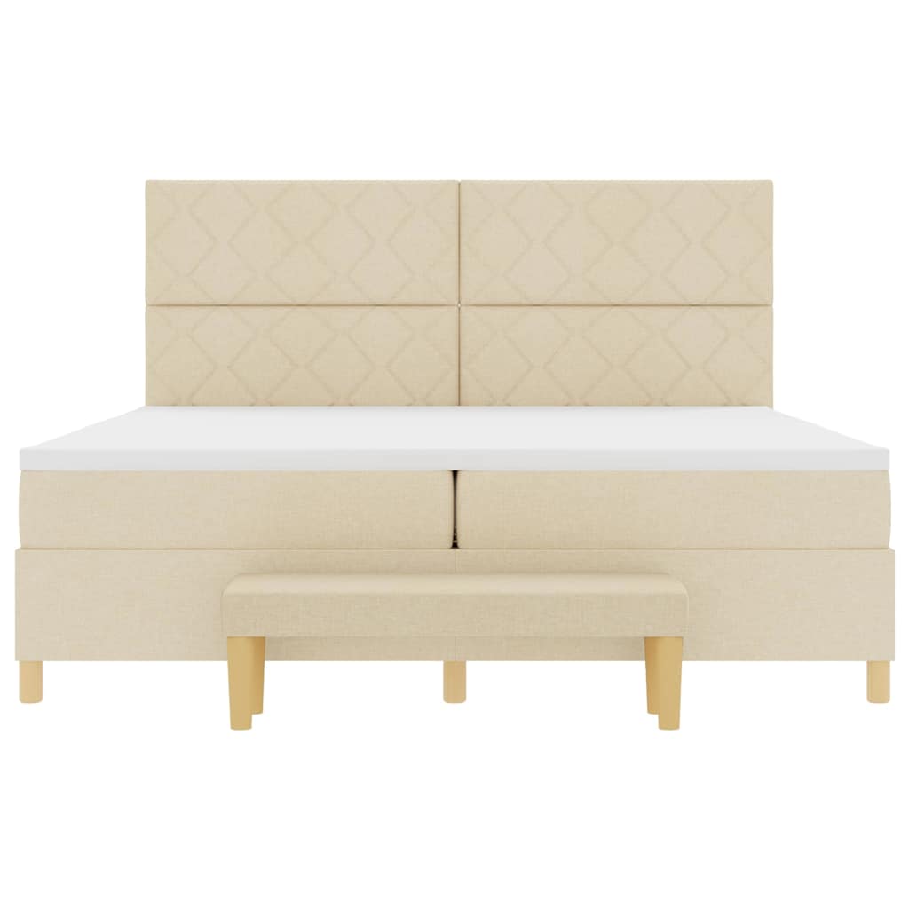 Bäddfjäder med madrass med huvudgavel Kräm 200 x 200 cm tyg