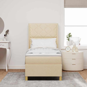 Bäddfjäder med madrass med huvudgavel Kräm 80 x 200 cm tyg