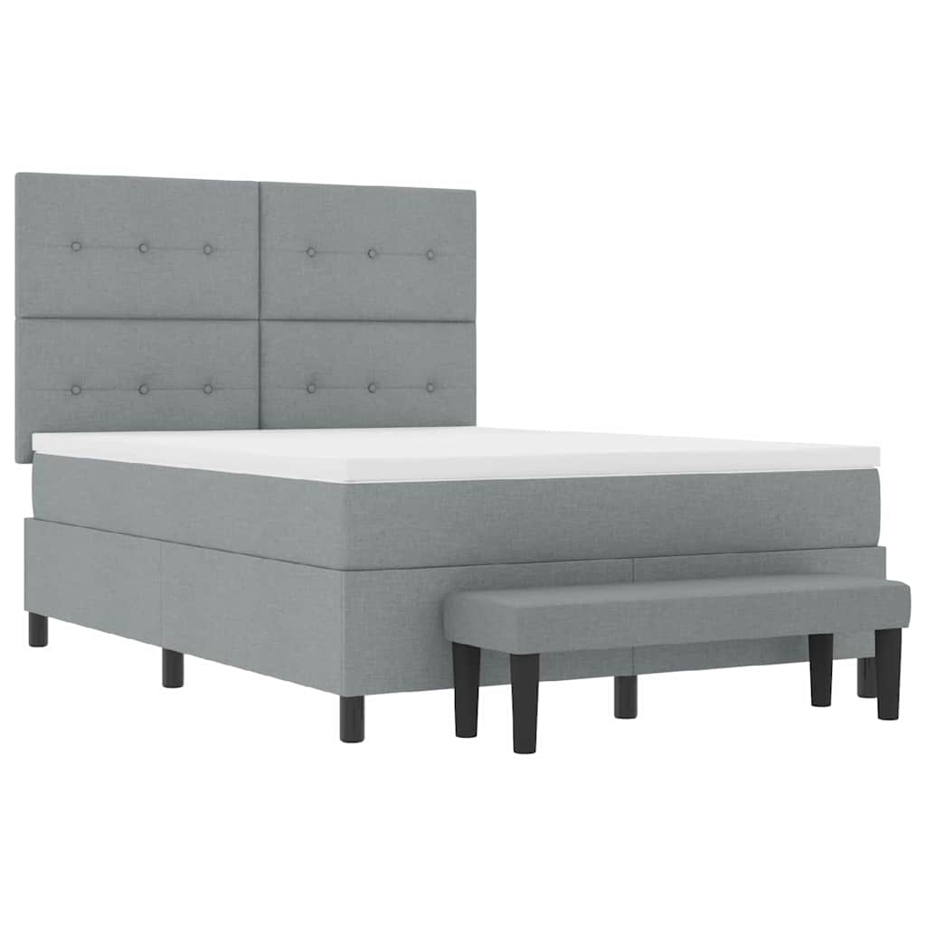 Bäddfjäder med madrass med huvudgavel Ljusgrå 160 x 200 cm tyg