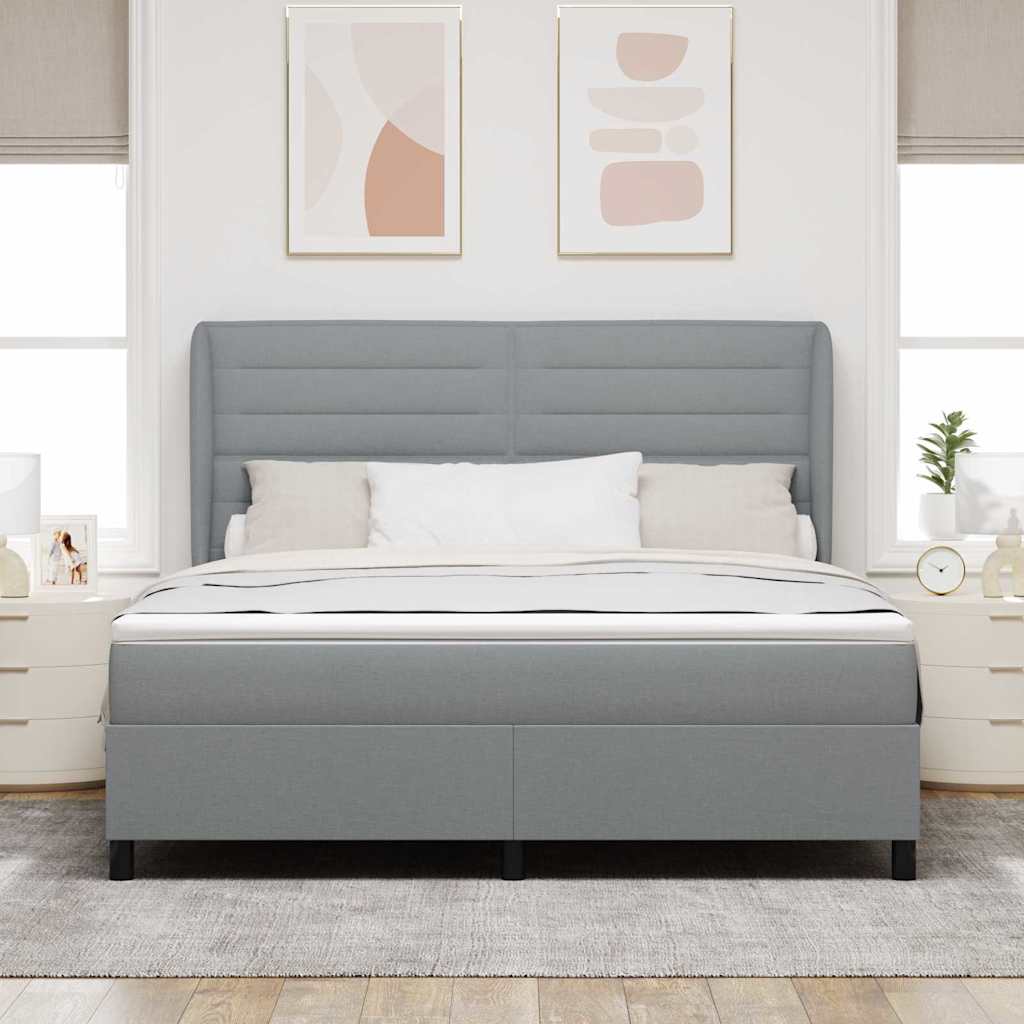 Bäddfjäder med madrass med huvudgavel Ljusgrå 180 x 200 cm tyg