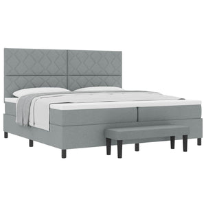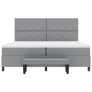 Bäddfjäder med madrass med huvudgavel Ljusgrå 200 x 200 cm tyg