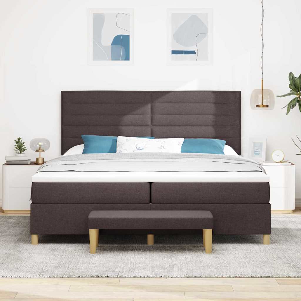 Bäddfjäder med madrass med huvudgavel Mörkbrun 200 x 200 cm tyg