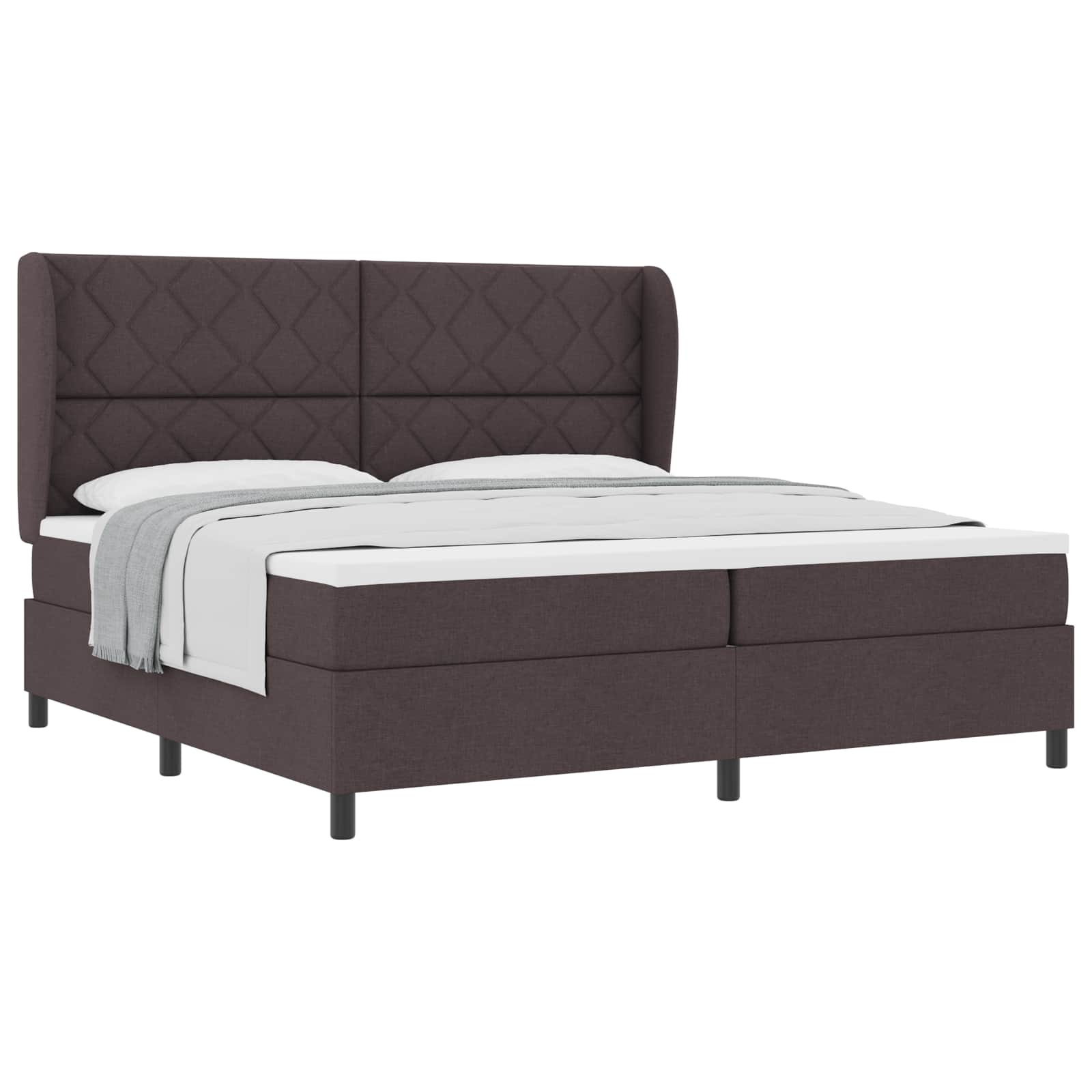 Bäddfjäder med madrass med huvudgavel Mörkbrun 200 x 200 cm tyg