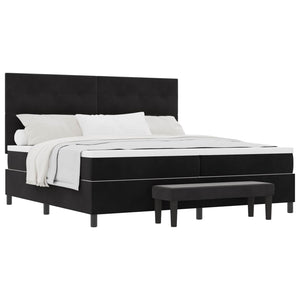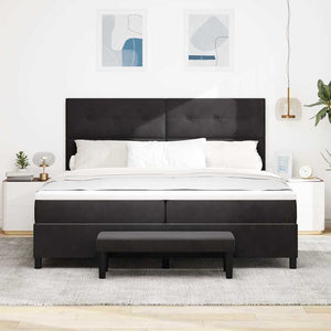 Bäddfjäder med madrass med huvudgavel Svart 200 x 200 cm Sammet