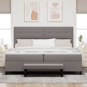 Bäddfjäder med madrass med huvudgavel Taupe 200 x 200 cm tyg