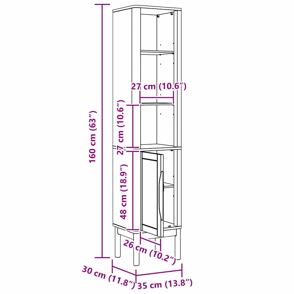 Badrumshögt skåp FLORO Vit 35 x 30 x 160 cm Massiv furu