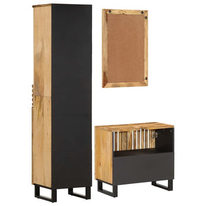 Badrumsmöbler 3 delar massivt grovt mangoträ