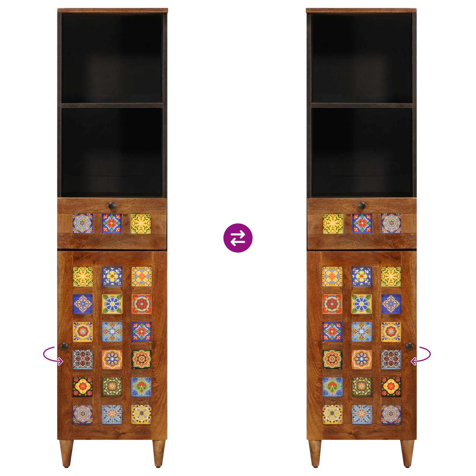 - Massivt mangoträ: Både ytan och dörrarna är gjorda av massivt mangoträ. Det är hållbart och ger en naturlig, elegant känsla som verkligen lyfter badrumsinredningen. Skåpet håller för daglig användning och ser alltid bra ut.