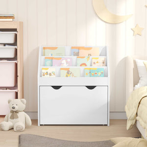 - Mycket förvaringsutrymme: Bokhyllan har praktiska fack och lådor som gör det enkelt att organisera böcker och små leksaker. Den smarta designen maximerar utrymmet samtidigt som den behåller en kompakt storlek.