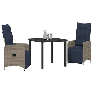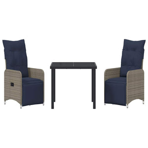 Bord- och stolset med kudde 3 pcs Grå PE Rattan