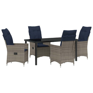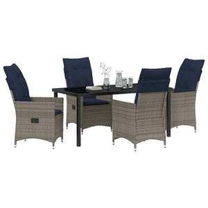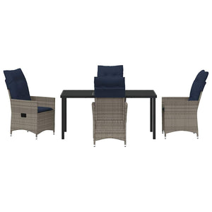 Bord- och stolset med kudde 5 pcs Grå PE Rattan