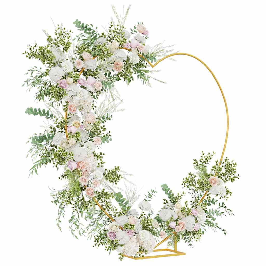 - Designfunktioner: Med sin moderna stil och hjärtformade design ger bågen lite extra flair till vilket utomhusutrymme som helst. Den passar lätt in i trädgårdar och på terrasser, vilket gör den till en extremt flexibel mittpunkt för både moderna och traditionella bröllopsteman.