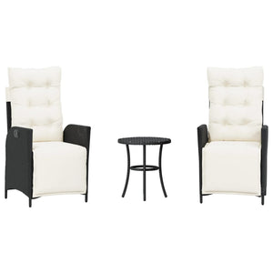 Caféset med dynor 3 delar svart konstrotting