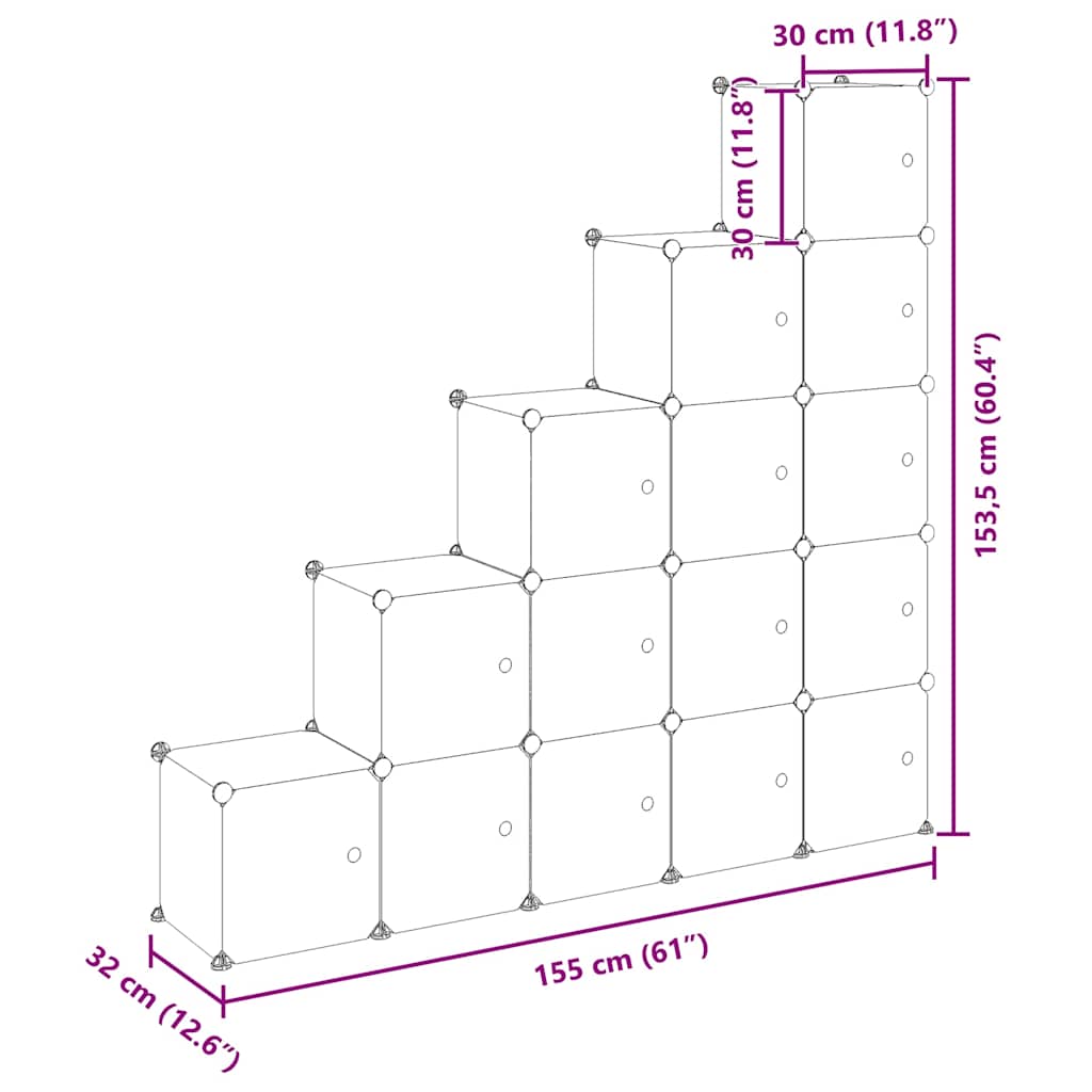 • Godt om förvaringsutrymme: Denna plastgarderob innehåller 15 modulära kuber. Förvaringsutrymmet gör det enkelt att hålla saker organiserade.