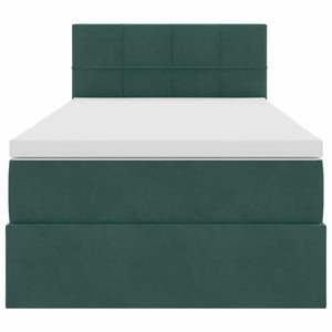 Förvaringssäng med LED med madrass Mörkgrön 100 x 200 cm Sammet