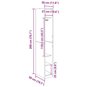 Garderob med hylla Svart Ek 50 x 30 x 200 cm Konstruerat trä