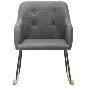 Gungstolen är klädd i mjukt tyg och har en metallram som gör den stabil och mjuk att sitta i. På grund av de långa gungskenorna kommer fåtöljen inte att välta så lätt. Dessutom har den metallben, som tillsammans med gungskenorna i trä gör gungstolen stabil och hållbar.