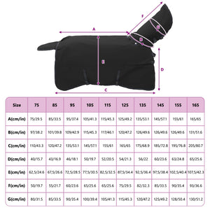 • Omfattande funktioner: Med ett avtagbart överdrag är filten lätt att sköta. Extra skydd, som ett svansskydd, håller hästen varm och skyddad mot vinden. Den hopfällbara designen gör den enkel att förvara när den inte används.