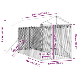 Hundgård med tak silver 2x6x2,5 m galvaniserat stål