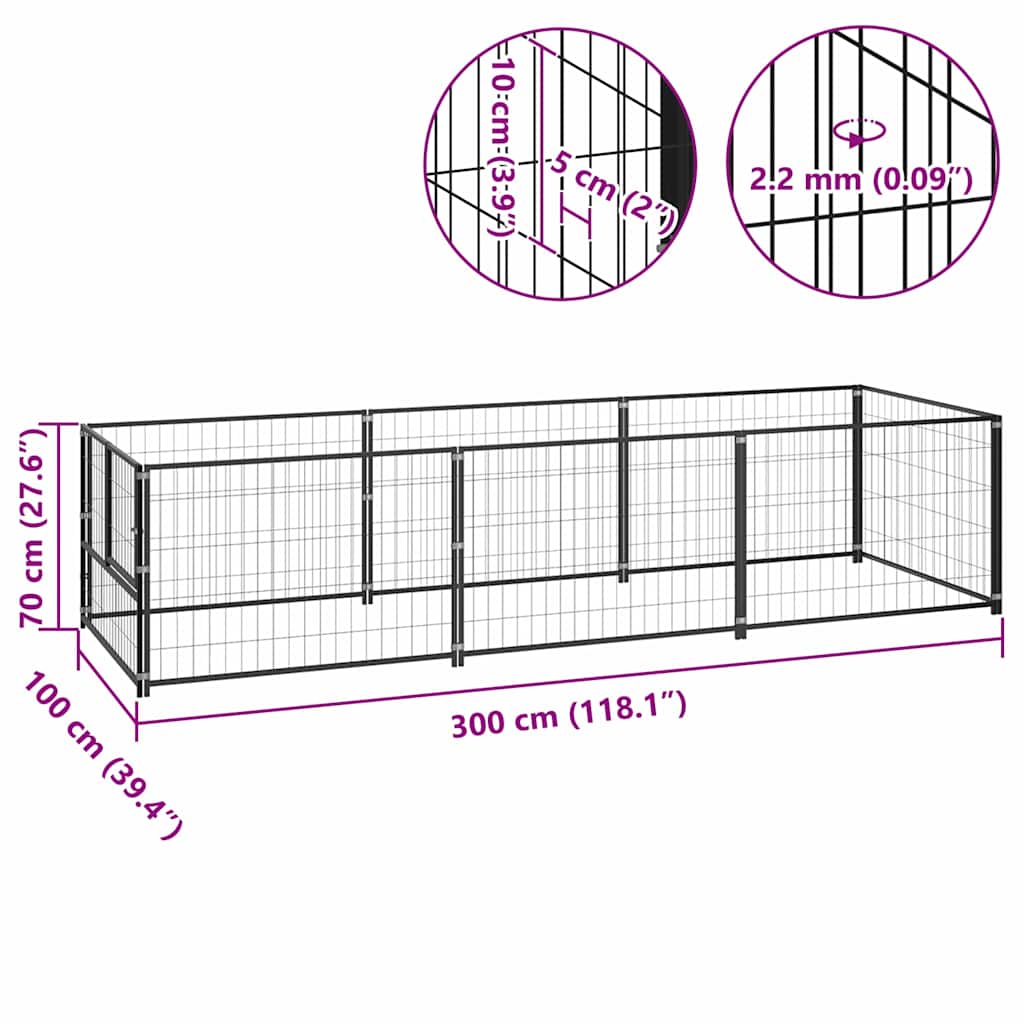 Denna stora hundgård har gott om plats för motion medan gallerväggarna hjälper till med att förhindra oväntade olyckor, samtidigt som de möjliggör ventilation. Tack vare den stabila stålkonstruktionen är denna hundgård byggd för att hålla. Dörren garanterar extra säkerhet och trygghet för dina hundar tack vare sin låsningsbara dörrklinka.
