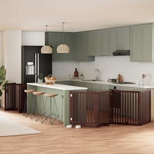 Hundgrind med dörr vikbar 12 paneler brun 960 cm poppel
