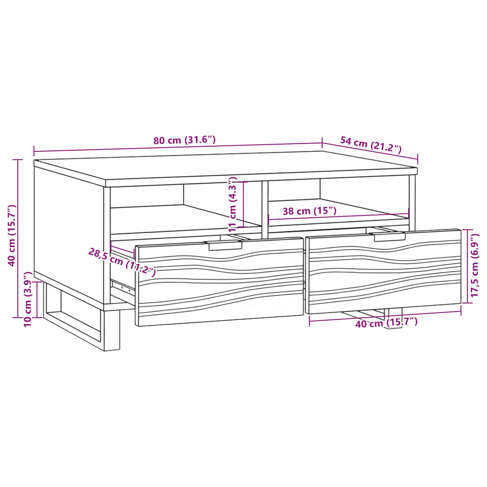 - Övergripande dimensioner: 80 x 54 x 40 cm (L x B x H)