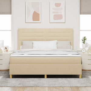 LED Box Säng med madrass med huvudgavel Kräm 180 x 200 cm tyg