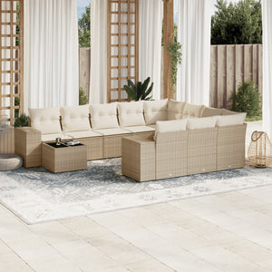 Loungegrupp för trädgården m. dynor 11 delar beige konstrotting