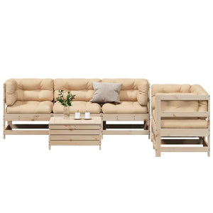 Loungegrupp för trädgården med dynor 6 delar massiv furu