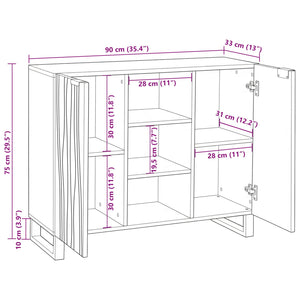 - Mångsidig Placering: Mäter 90 x 33 x 75 cm, så det här skåpet passar bra mot väggar. Superbra som en fokuspunkt eller extra förvaring – det hittar en bra balans mellan att vara användbart och spara plats i vilket hem som helst.