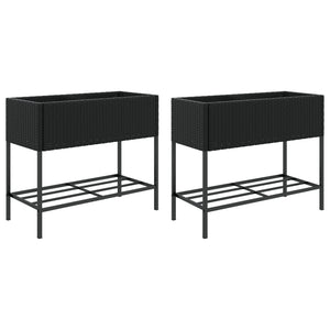 Odlingslådor med hylla 2 st svart 90x40x75 cm konstrotting