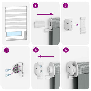 - Två monteringssätt: Du kan fästa zebrarullgardinen på väggen eller fönstret med skruvar eller utan att borra med hjälp av klämfästen, beroende på dina behov.