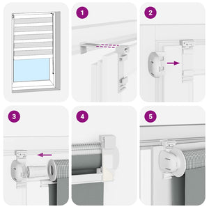 • Två monteringssätt: Du kan fästa zebrarullgardinen på väggen eller fönstret med skruvar eller utan att borra med hjälp av klämfästen, beroende på dina behov.