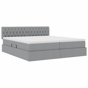 Säng med LED -remsljus med huvudgavel Ljusgrå 200 x 200 cm tyg