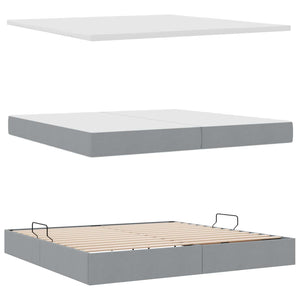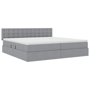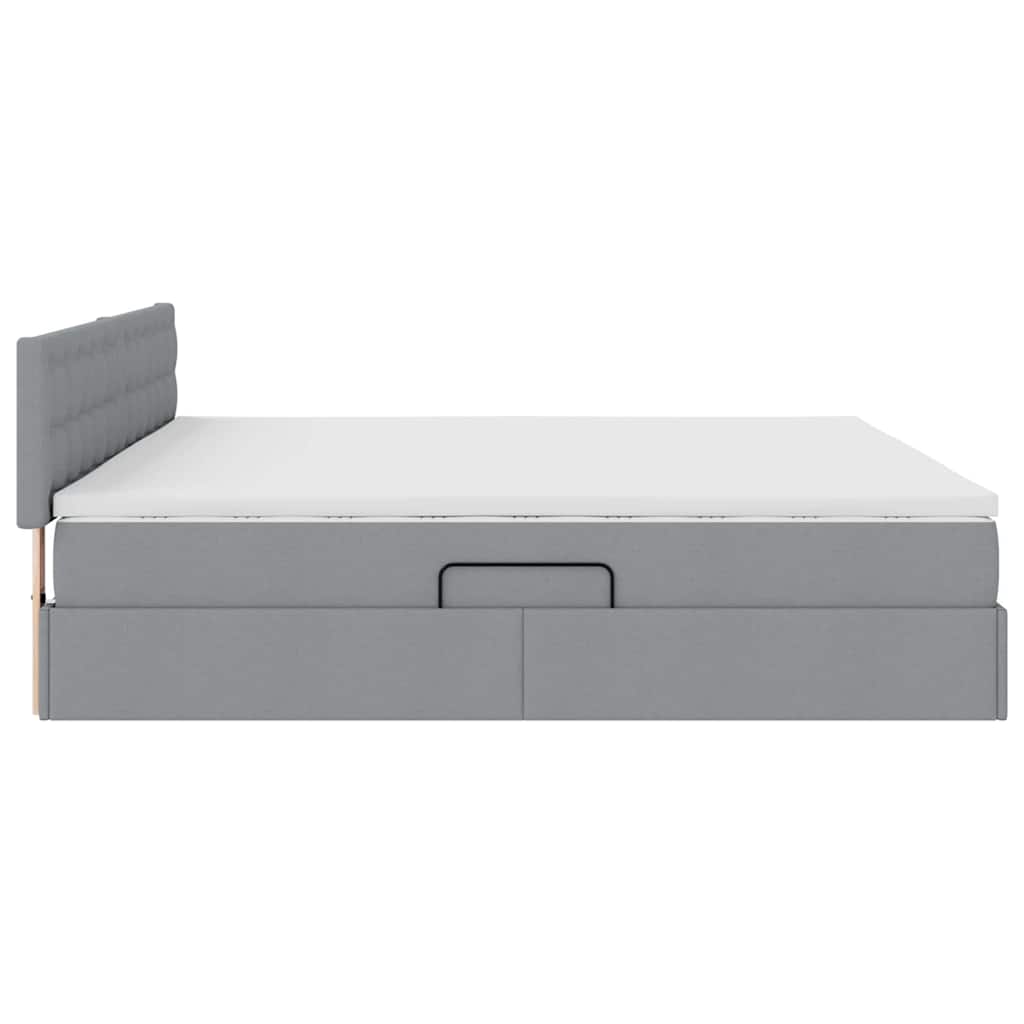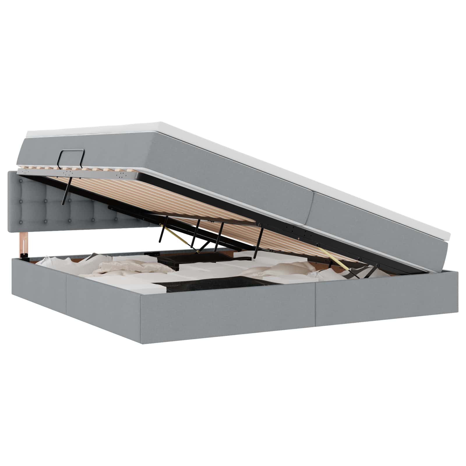 Förvaringssäng med LED med madrass Ljusgrå 200 x 200 cm tyg