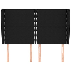 Sänggavel med kanter svart 147x23x118/128 cm tyg