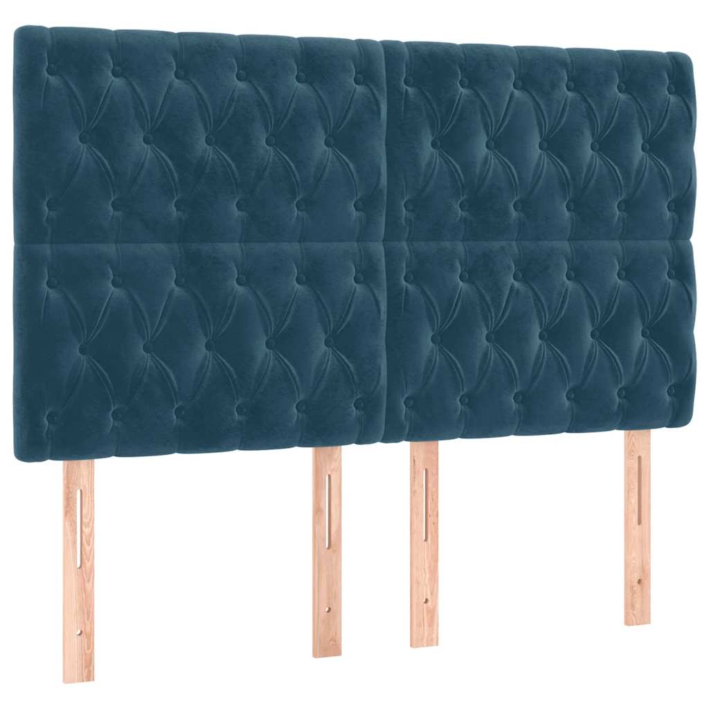 Sänggavel mörkblå 160x7x118/128 cm sammet