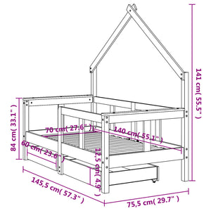 Sängram för barnsäng m. lådor vit 70x140 cm massiv furu