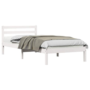 Sängram med huvudgavel Vit 225,5 x 85,5 x 69,5 cm Massiv furu