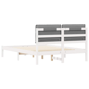 Sängram med Klädd Huvudgavel Ljusgrå 150 x 200 cm Massiv furu