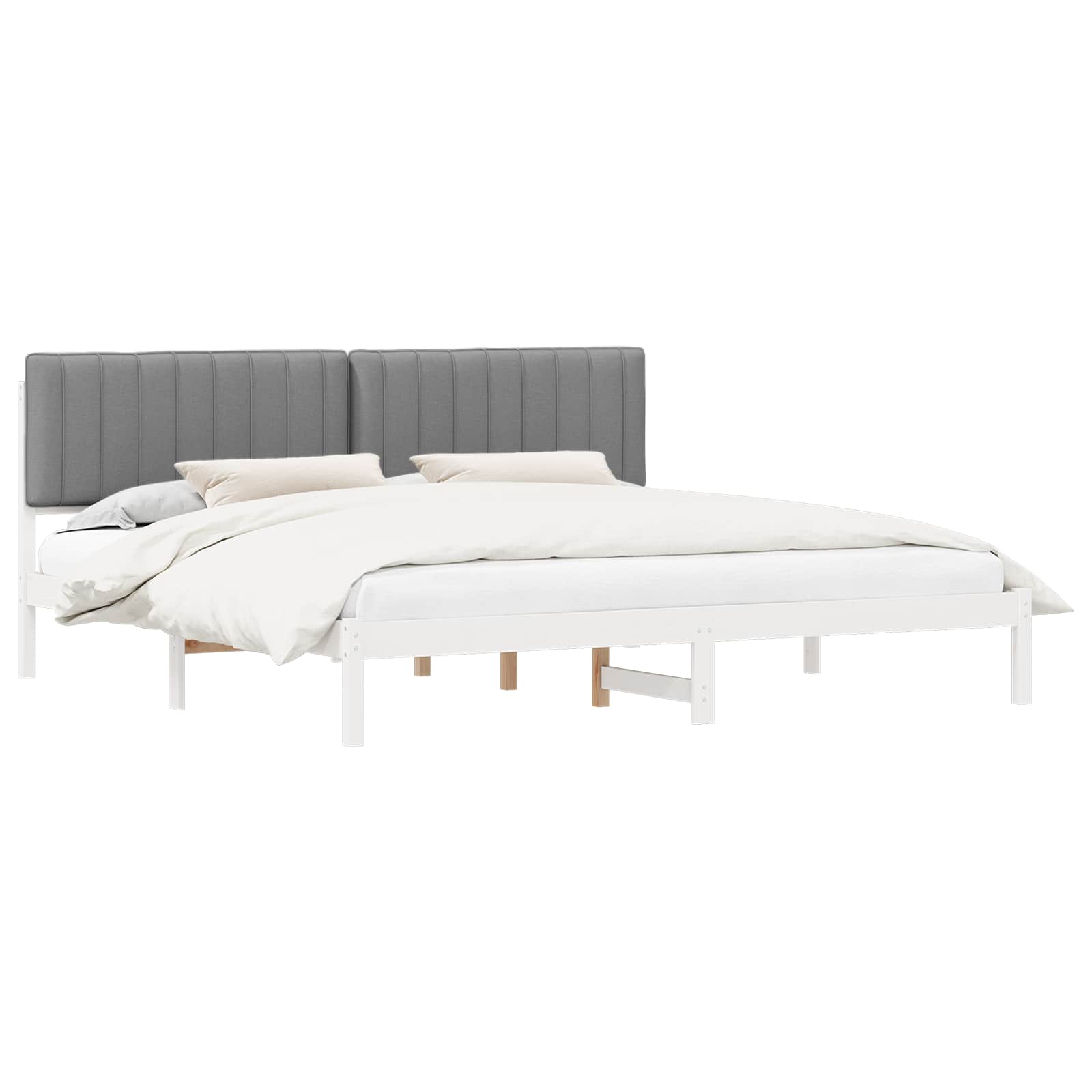 Sängram med Klädd Huvudgavel Ljusgrå 200 x 200 cm Massivt furu