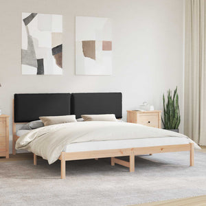 Sängram med Klädd Huvudgavel Svart 180 x 200 cm Massiv furu