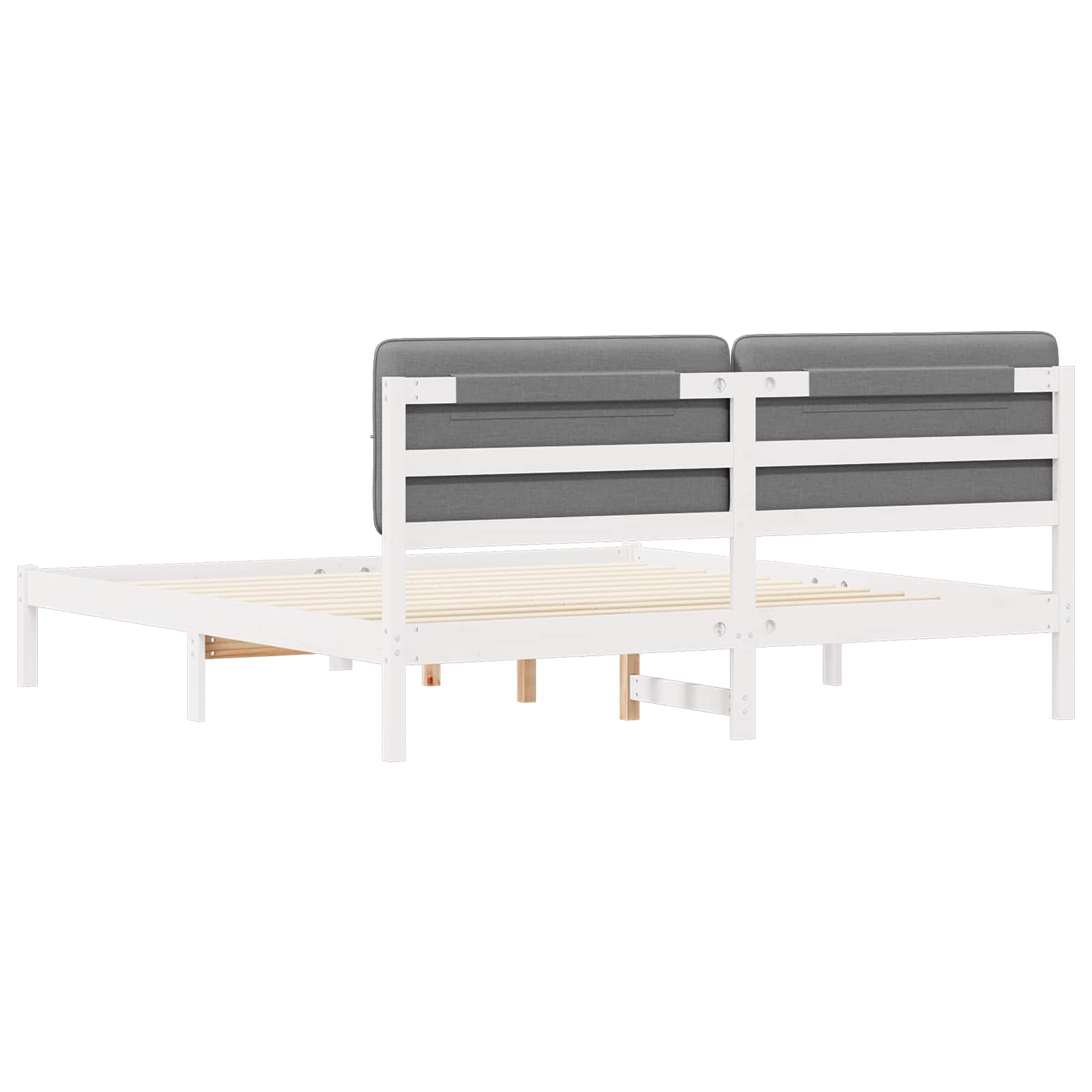 Sängram med Klädd Huvudgavel Taupe 200 x 200 cm Massiv furu