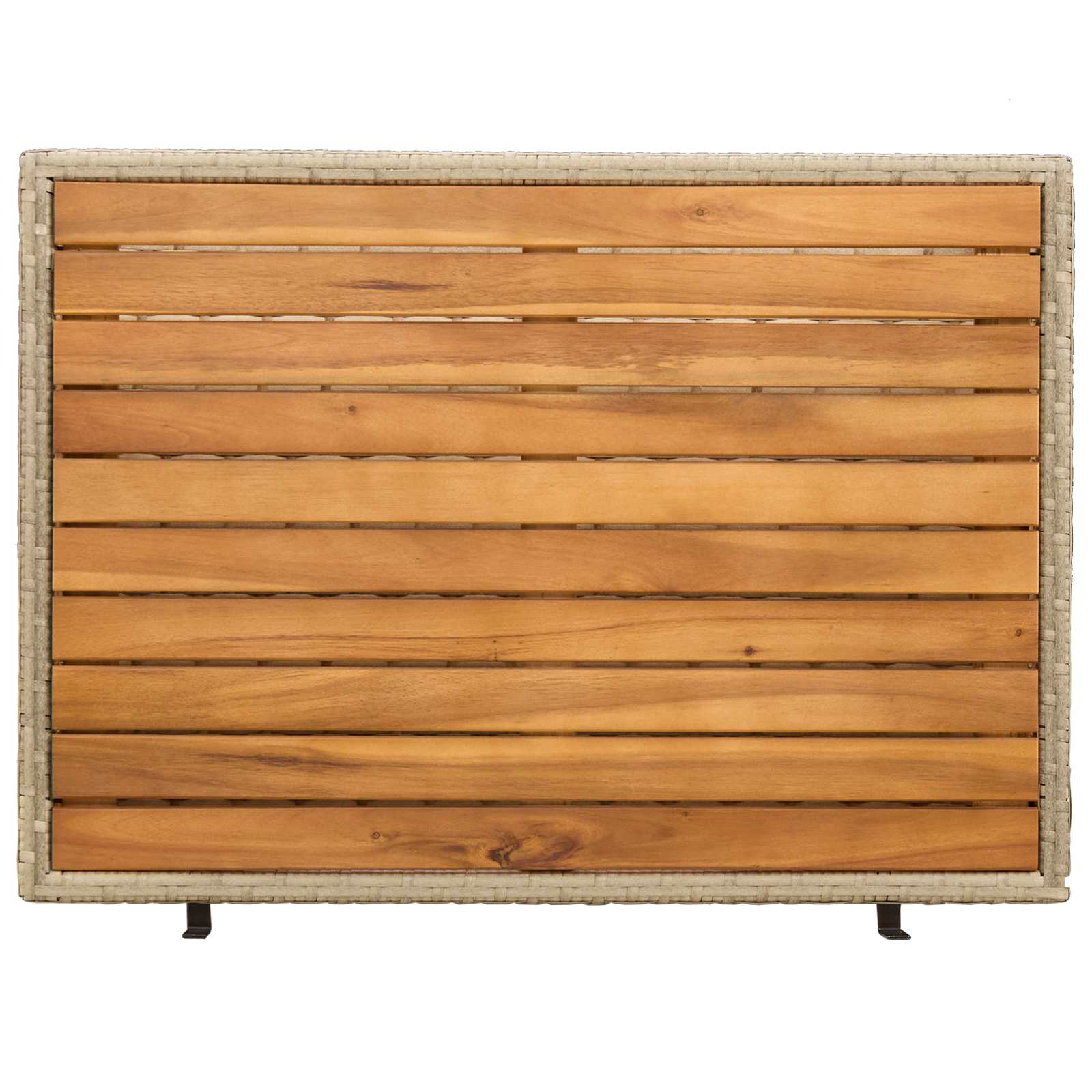 Detta stiliga Rattan-skåp med träöverdel ger en modern känsla till både inomhus och utomhus. Det passar fint in i vilken trädgård eller terrass som helst och har rena linjer och en funktionalitet som andas enkelhet och stil. De naturliga tonerna och materialmixen gör att det passar bra i många inredningar och höjer både nytta och stil för husägare som vill ha praktiska och snygga förvaringslösningar.