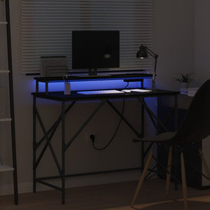 Skrivbord med hylla Svart Ek 100 x 50 x 86,5 cm Konstruerat trä