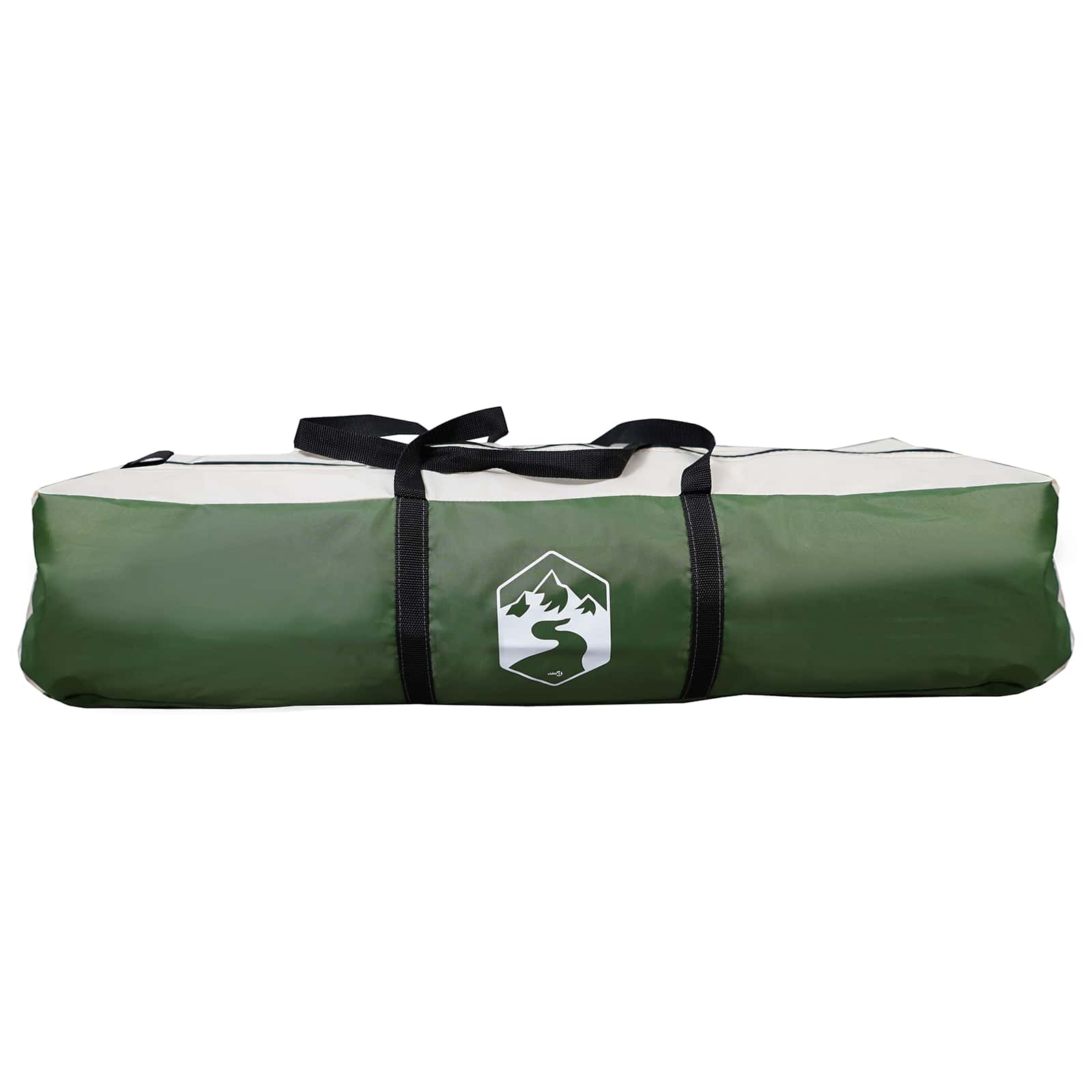 - Omfattande komponentpaket: Inkluderar förmonterade stöttor, ett avtagbart regnskydd för extra skydd mot vädret, sex spännlinor för stabilitet och en praktisk bärväska för enkel transport. De 10 medföljande pinnar stärker stabiliteten så att tältet står kvar oavsett vind, vilket ger lugn när du campar.