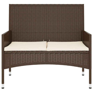 Trädgårdsbänk 2-sits med dynor konstrotting brun